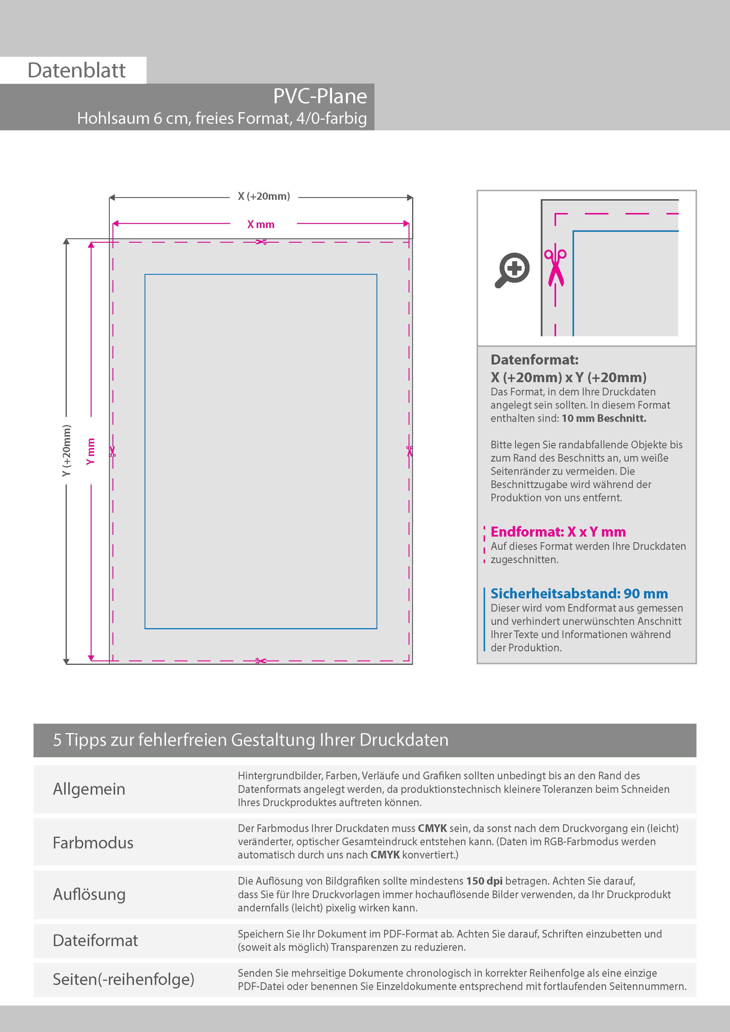 Hochwertige PVC-Plane, 4/0-farbig bedruckt, Hohlsaum oben und unten (Durchmesser Hohlsaum 6,0 cm)