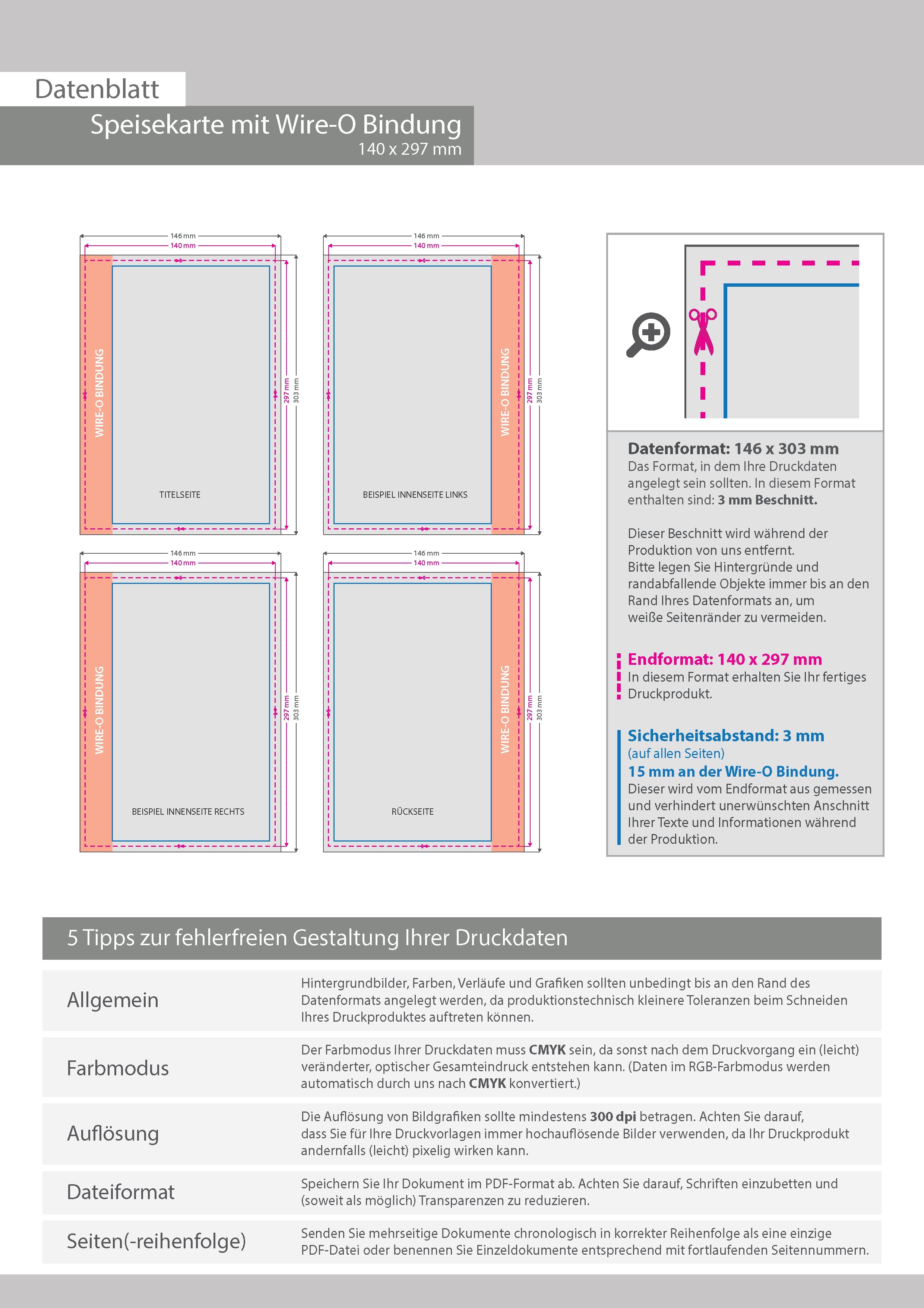 Speisekarte mit Metall-Spiralbindung, Endformat 14,0 cm x 29,7 cm, 12-seitig