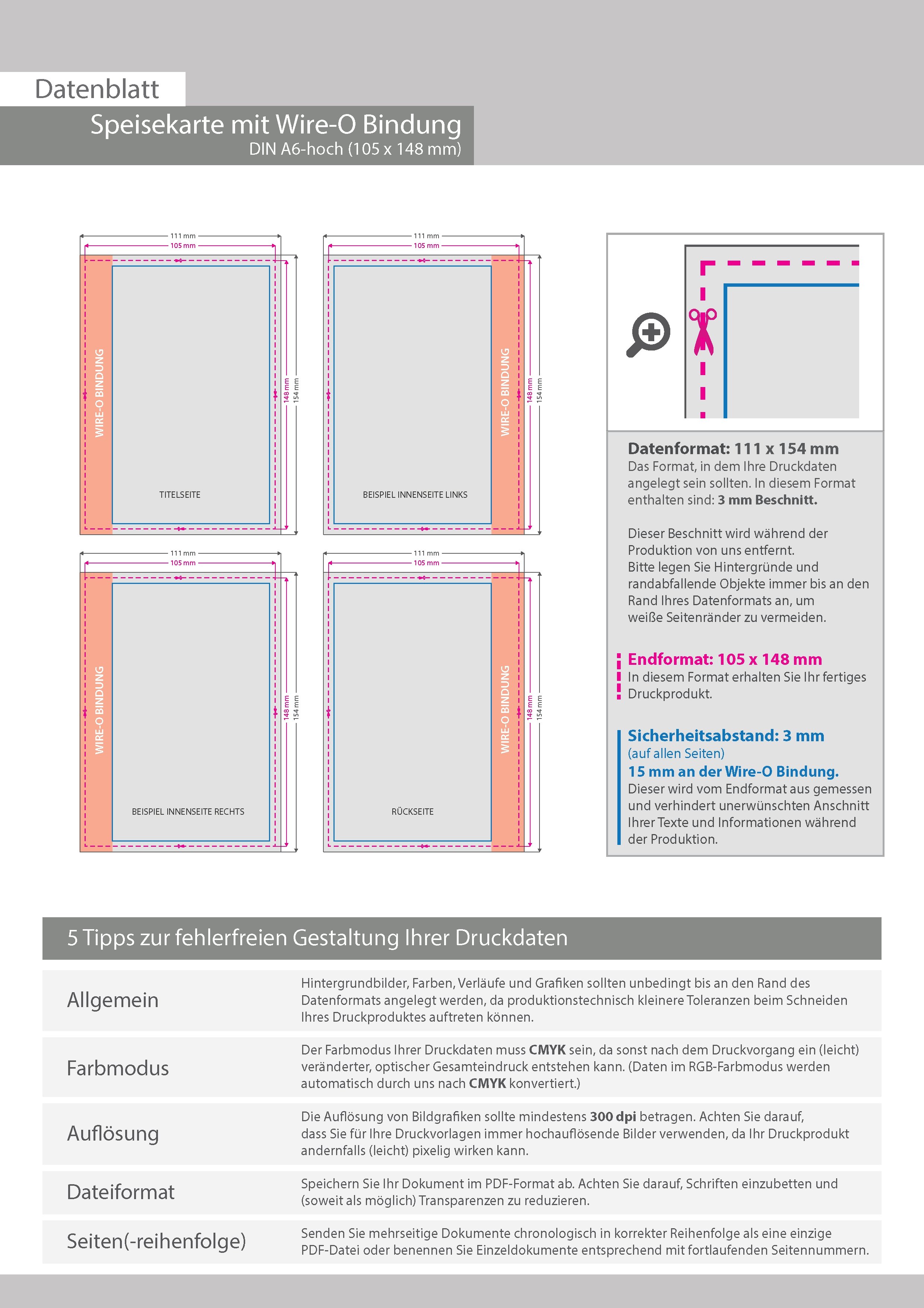 Speisekarte mit Metall-Spiralbindung, Endformat DIN A6, 36-seitig