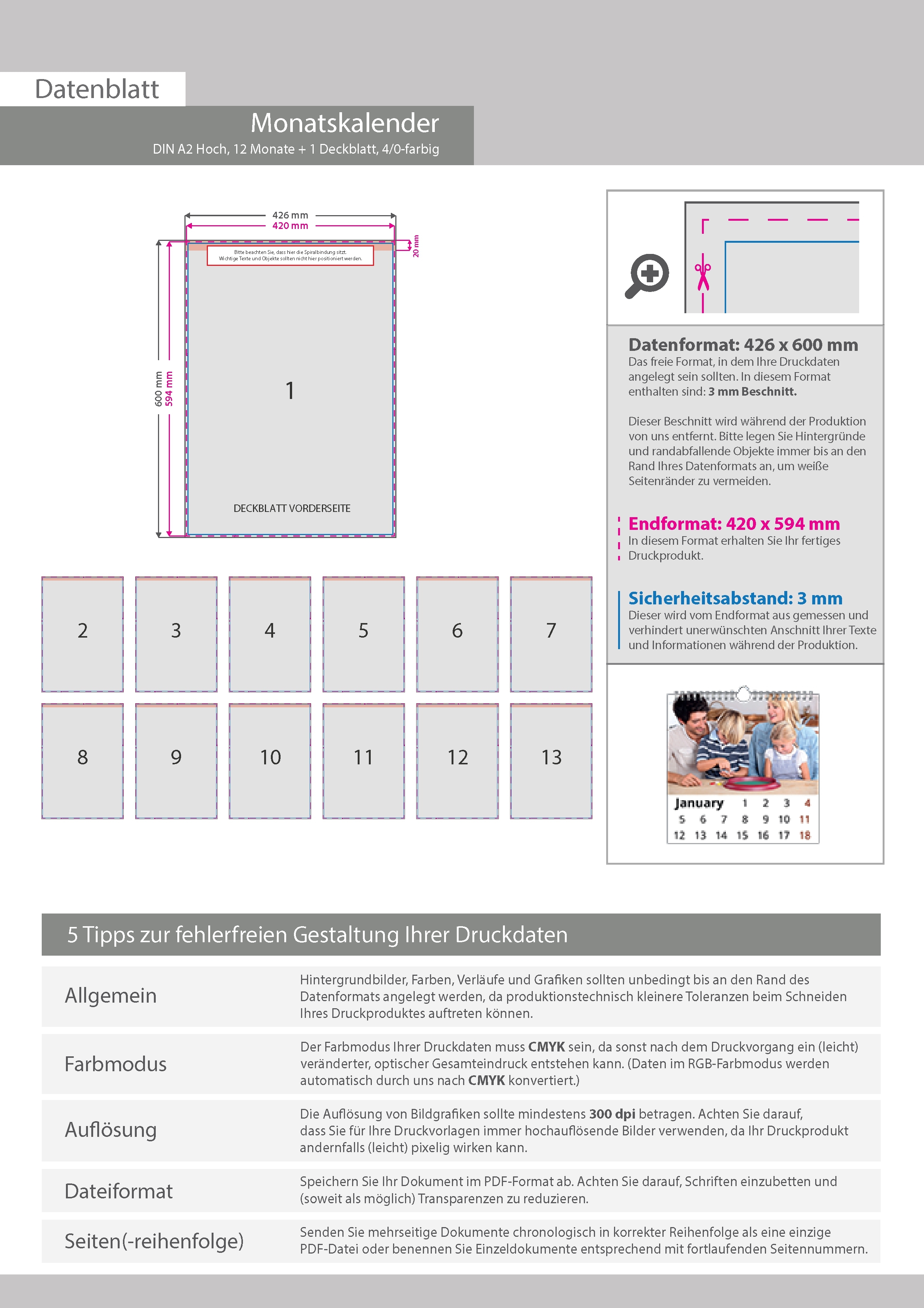 Monatskalender 13 Blatt (12 Monate + Deckblatt)