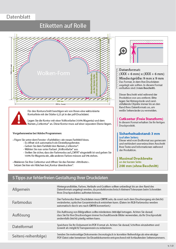 Hochwertige Etiketten auf Rolle in Wolke-Form