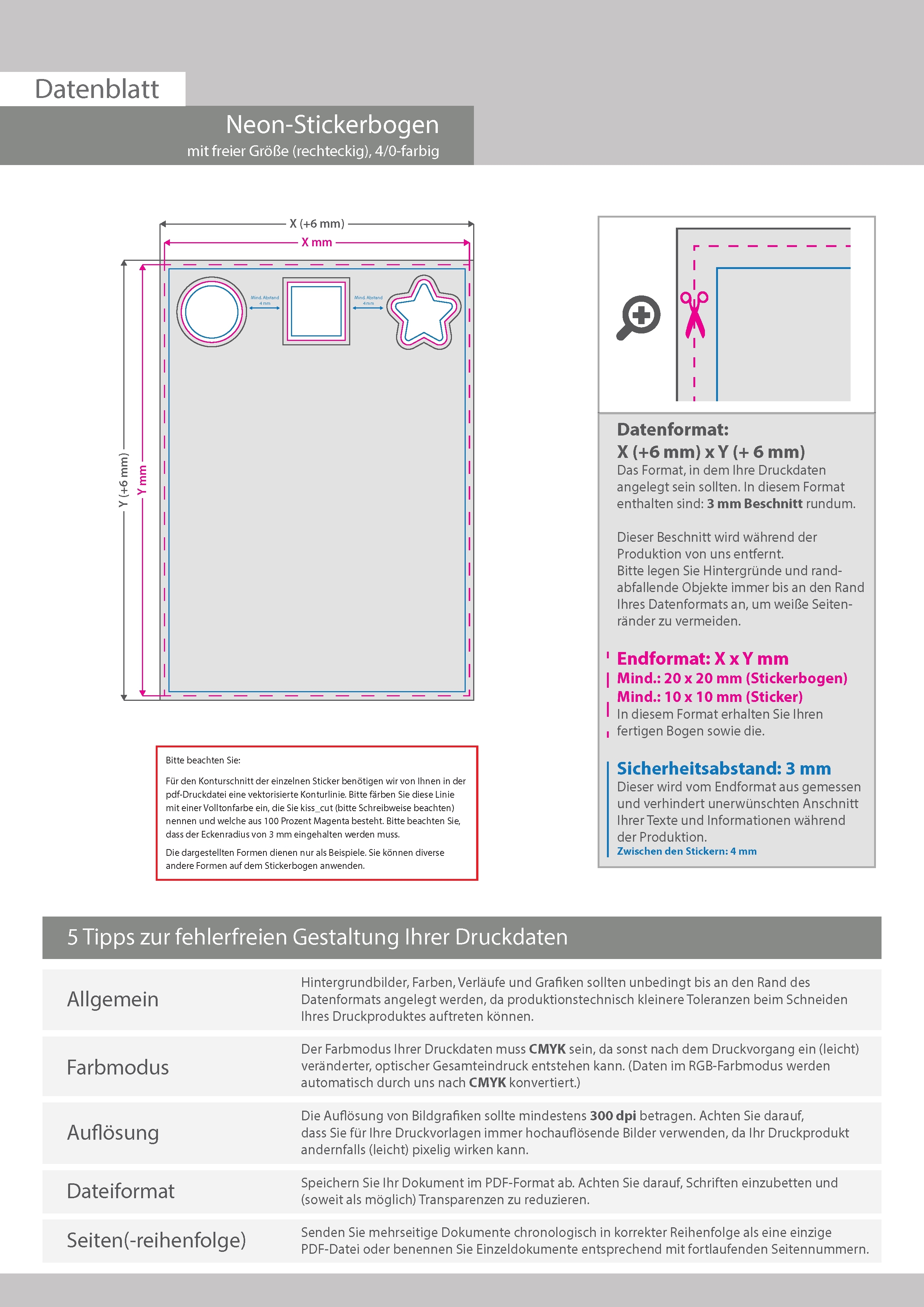 Neon-Stickerbogen 4/0 farbig bedruckt mit freier Größe (rechteckig)