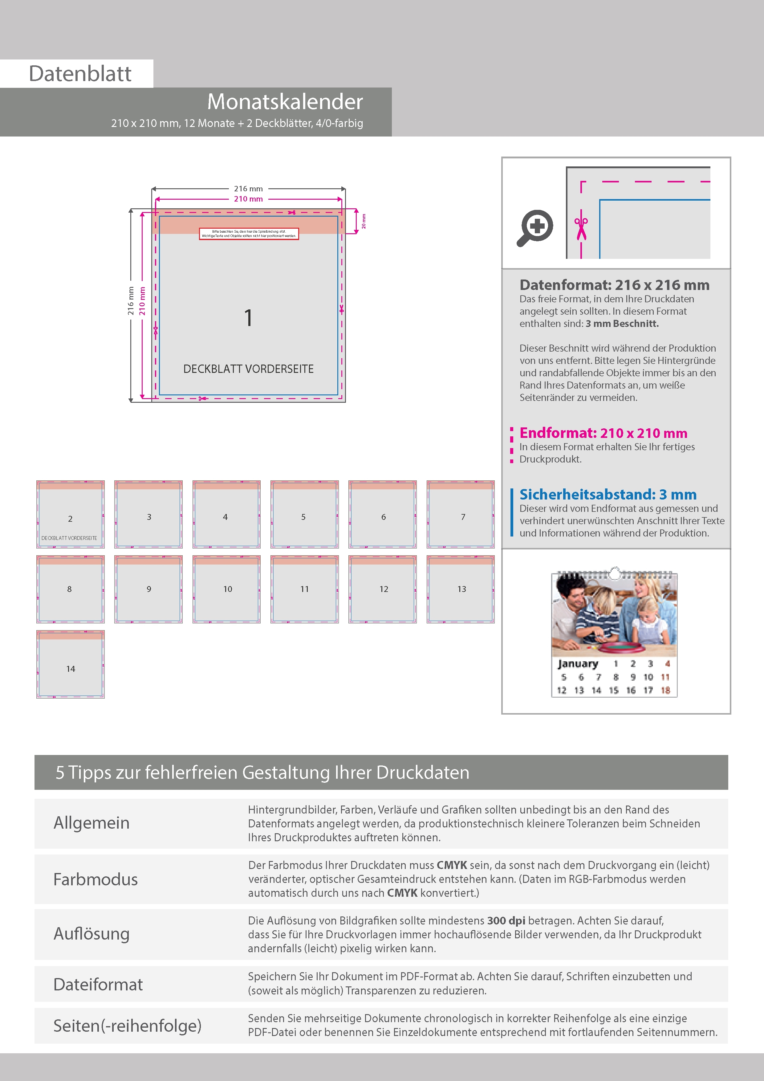 Monatskalender 14 Blatt (12 Monate + 2 Deckblätter)
