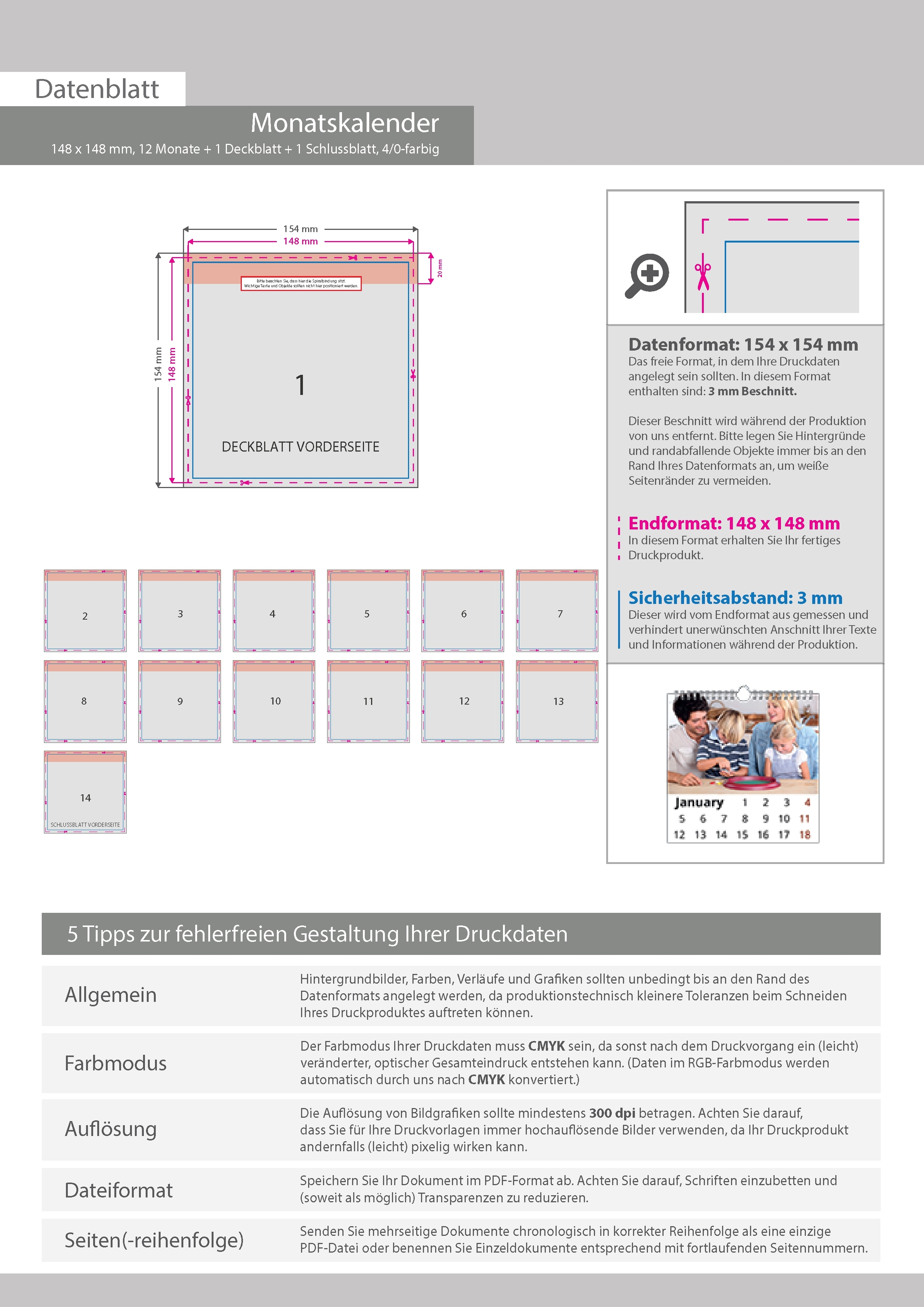 Monatskalender 14 Blatt (12 Monate + 1 Deckblatt + 1 Schlussblatt)
