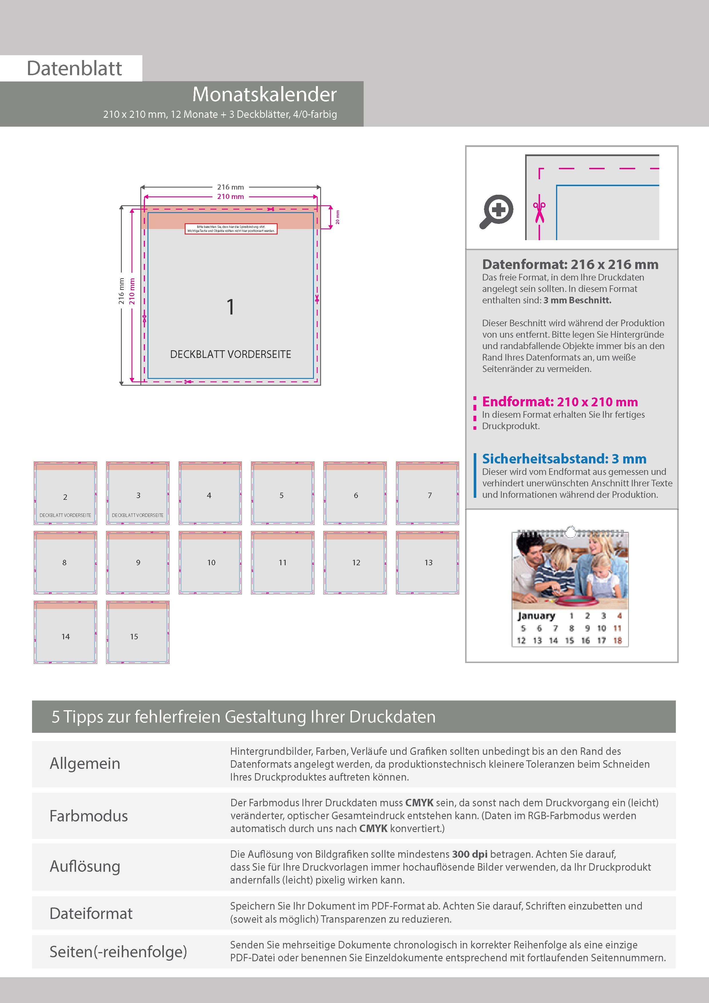 Monatskalender 15 Blatt (12 Monate + 3 Deckblätter)