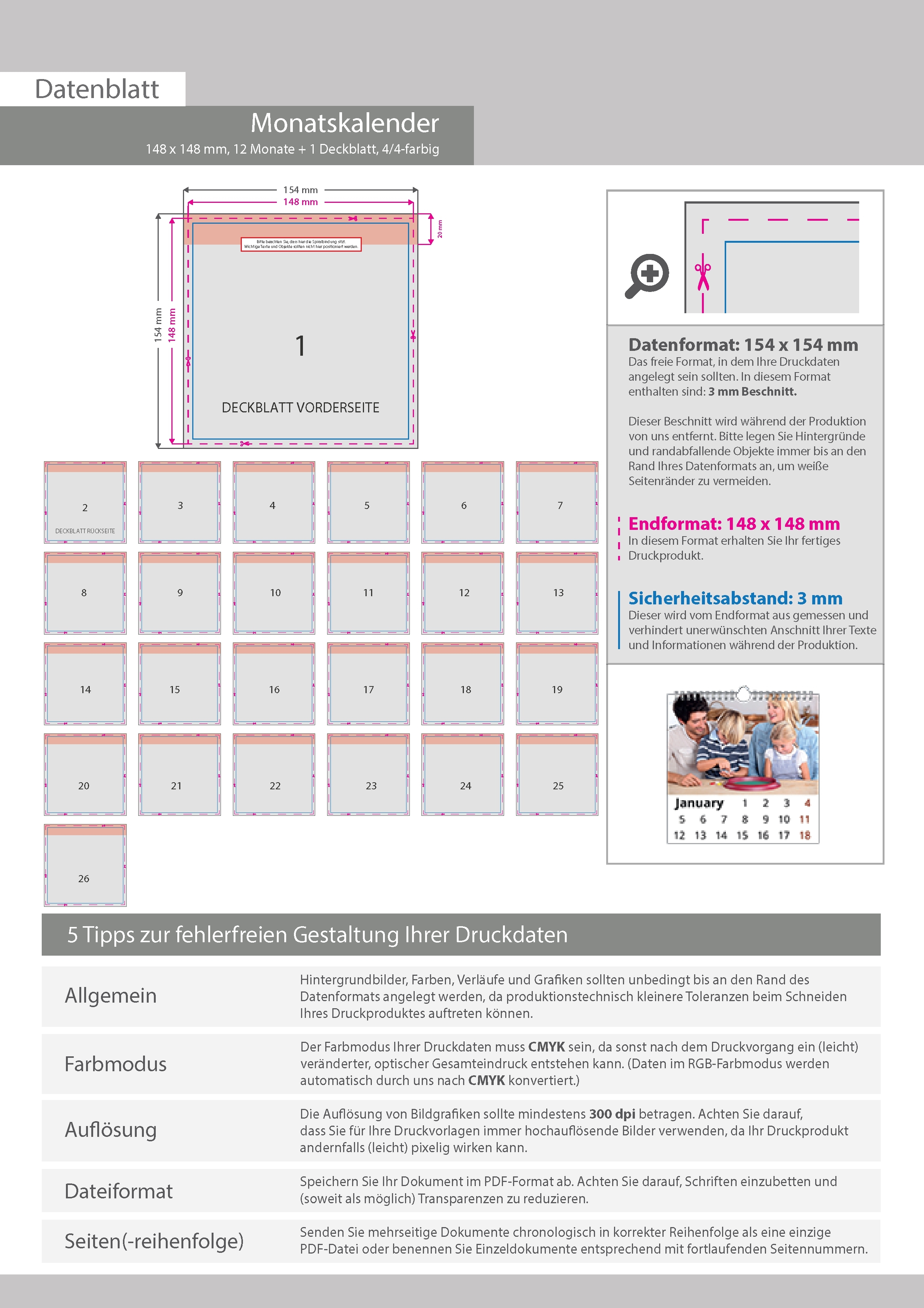 Monatskalender 13 Blatt (12 Monate + Deckblatt)
