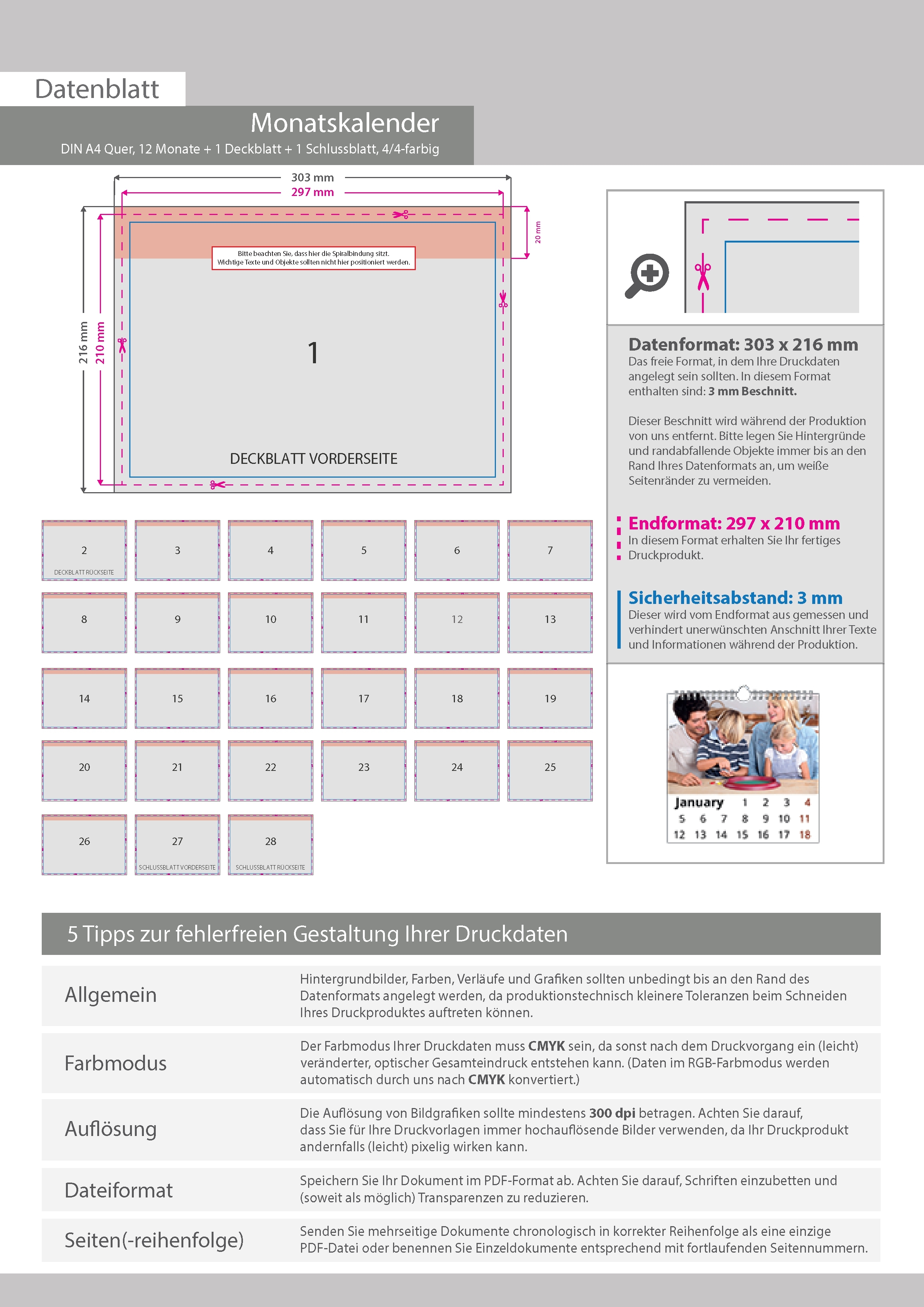 Monatskalender 14 Blatt (12 Monate + 1 Deckblatt + 1 Schlussblatt)